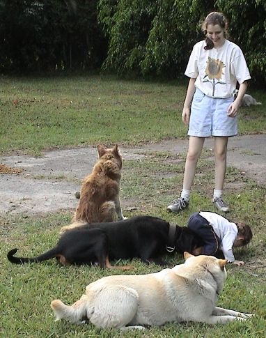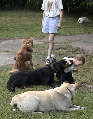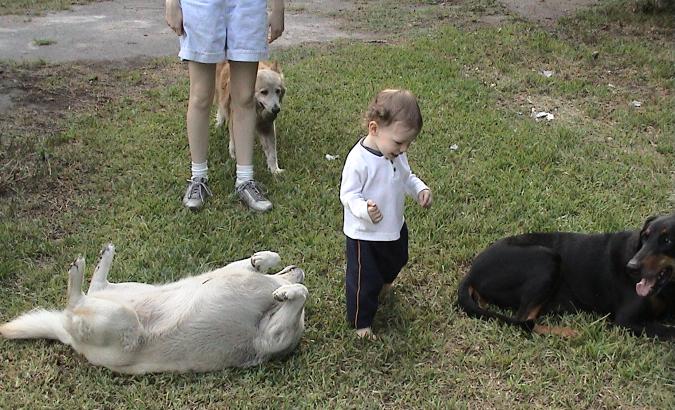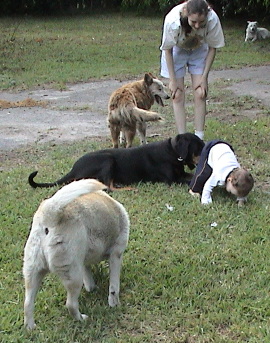 Sean does a little walking, and the dogs wait for him to pet and play with them